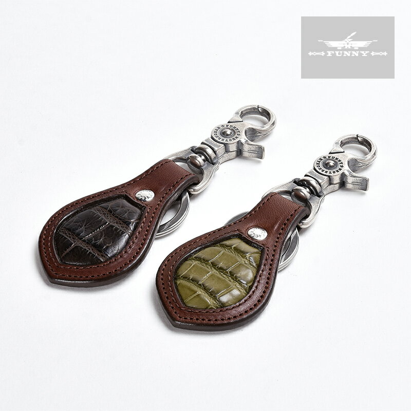 【★FUNNY直営店★】ティアドロップ キーホルダー 【ブライドルレザー/ブラウン】 【クロコダイル】 メンズ ユニセックス 鍵 本革 牛革 経年変化 アメ色 タン ブラウン レッド ブラック コイン コンチョ ギフト FUNNY ファニー